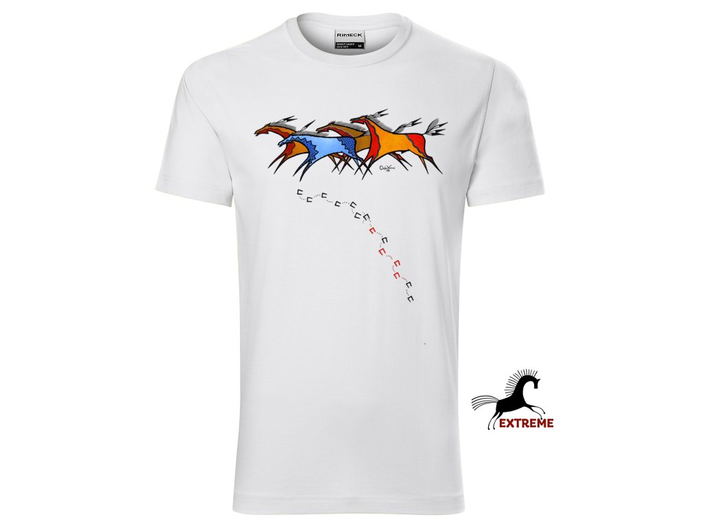 Tričko s autorským motivem je připomínkou víry indiánů, že symboly řídí osud zvířete, zajistí mu ochranu, nebo vypovídaly o náklonnostech jezdce ke svému koni.