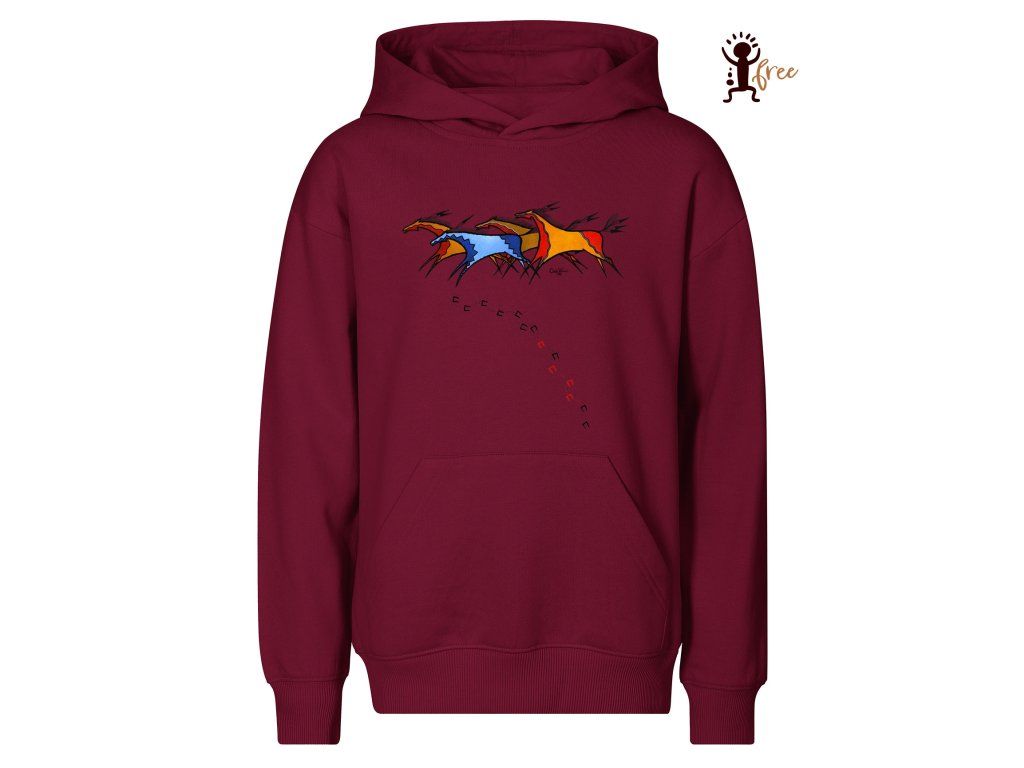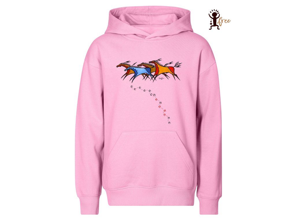Mikina s autorským motivem je připomínkou víry indiánů, že symboly řídí osud zvířete, zajistí mu ochranu, nebo vypovídaly o náklonnostech jezdce ke svému koni.
