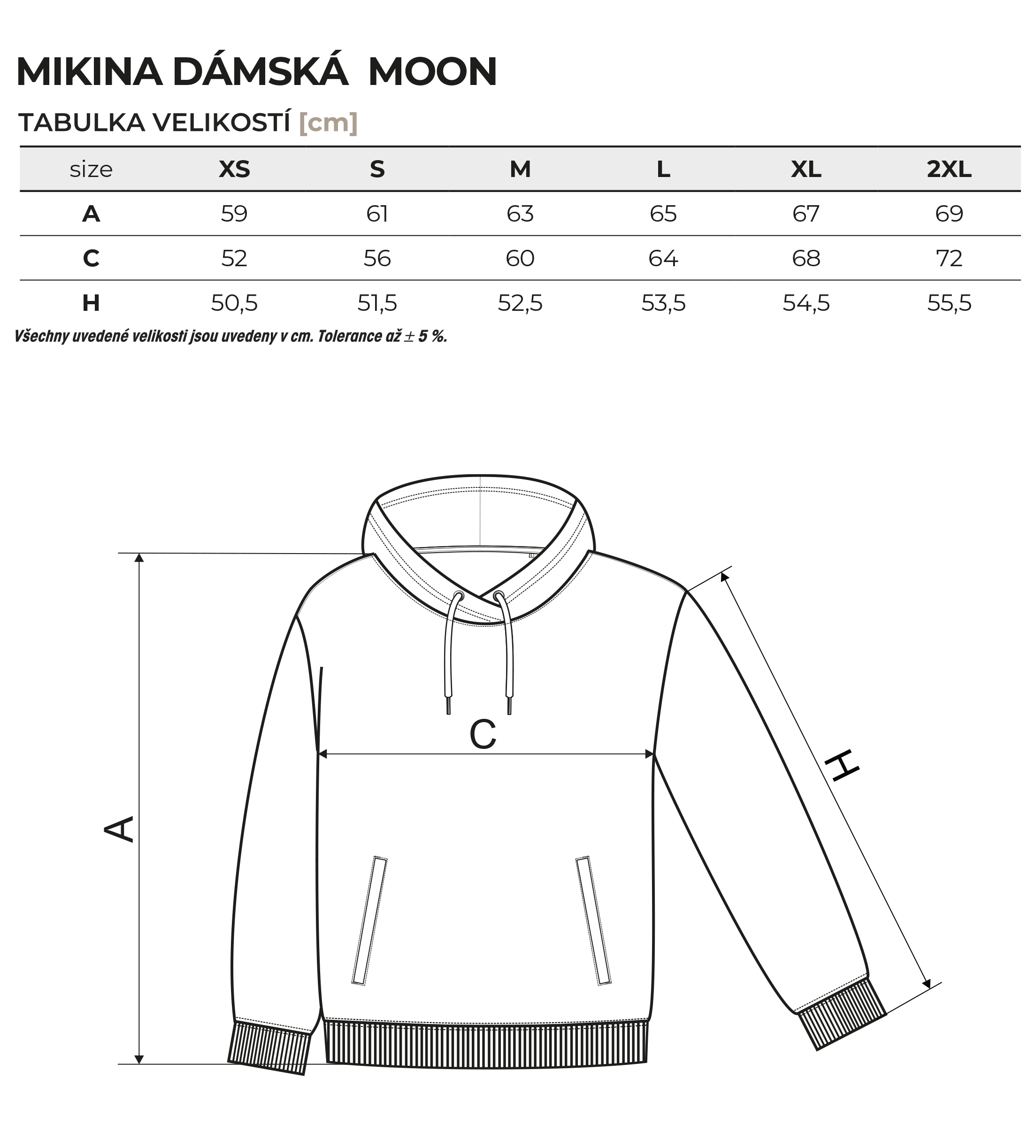 Tabulka velikostí - mikiny dámské MOON
